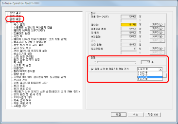 절전 모드로 전환되는 대기 시간 설정하기 [절전] 스캐너를 특정 기간 동안 사용하지 않으면 전원 소비를 절약하기 위해 절전 모드로 전환됩니다. Software Operation Panel을 시작합니다. Software Operation Panel 시작하기를 참조해 주십시오. 왼쪽 목록에서 [장치 설정]을 선택합니다. 슬라이드 막대를 사용하여 절전 모드로 전환되는 대기 시간을 지정합니다. 값은 5 ~ 115 분의 범위에서 가능합니다. (5 분 단위로 증가) 정보 [일정 시간 후 자동으로 전원 끄기] 확인란을 선택한 경우, 전원을 켠 상태에서 설정 시간 동안 스캐너를 사용하지 않으면 스캐너 전원이 자동으로 꺼집니다. 전원이 꺼질 때까지의 시간을 1/2/4/8 시간 중에서 선택할 수 있습니다. [일정 시간 후 자동으로 전원 끄기] 체크 상자를 해제하면 스캐너의 전력 소비량이 증가합니다.