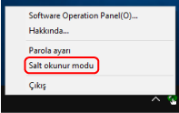 Software Operation Panel [Salt okunur modu]'ndan çıktığında, bildirim alanındaki Software Operation Panel simgesine sağ tıkladığınızda görüntülenen menüdeki [Salt okunur modu]'nun yanında bulunan onay işareti silinir.